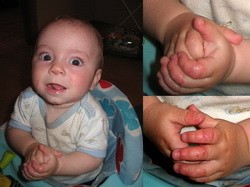 Здравствуйте! Меня зовут Елена, и я хотела бы поделиться с Вами опытом лечения своего ребенка. В 3,5 месяца у моего малыша начались высыпания на коже. Вначале кожа краснела, потом на ней появлялись узелки, постепенно переходящие в небольшие пузыри. Со временем пузырьки лопались, на их месте оставались крошечные эрозии. Позже они сливались, образуя огромное мокнущее пятно. Все эти пятна практически не заживали. Поражены были щеки, носик, практически полностью ножки и пальцы рук. Отдельные небольшие очаги, также были и на теле.